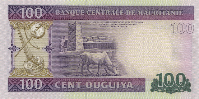 Mauritania 100 Ouguiya (1974-2002) with Chinguetti Mosque.